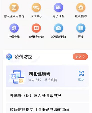 2、点击首页“健康码”或搜索“湖北健康码”;