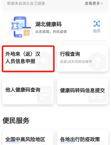 第三步:点击“外地来(返)汉人员信息申报”,进入申报界面;