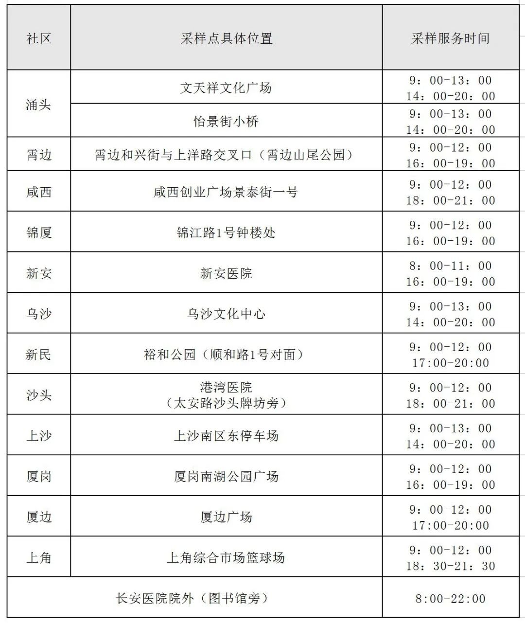 其他市民可以到以下自费核酸采样点进行采样检测,核酸混检收费标准为5元/人。