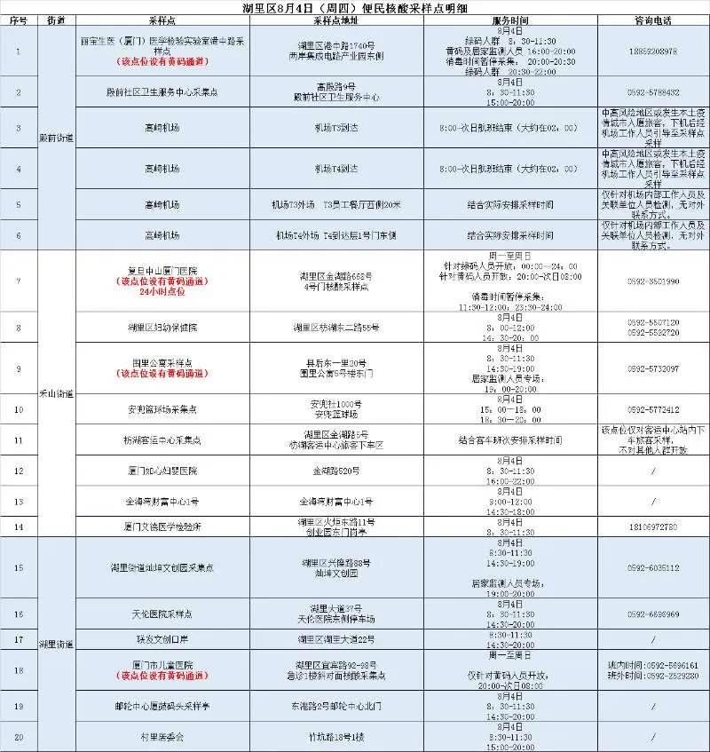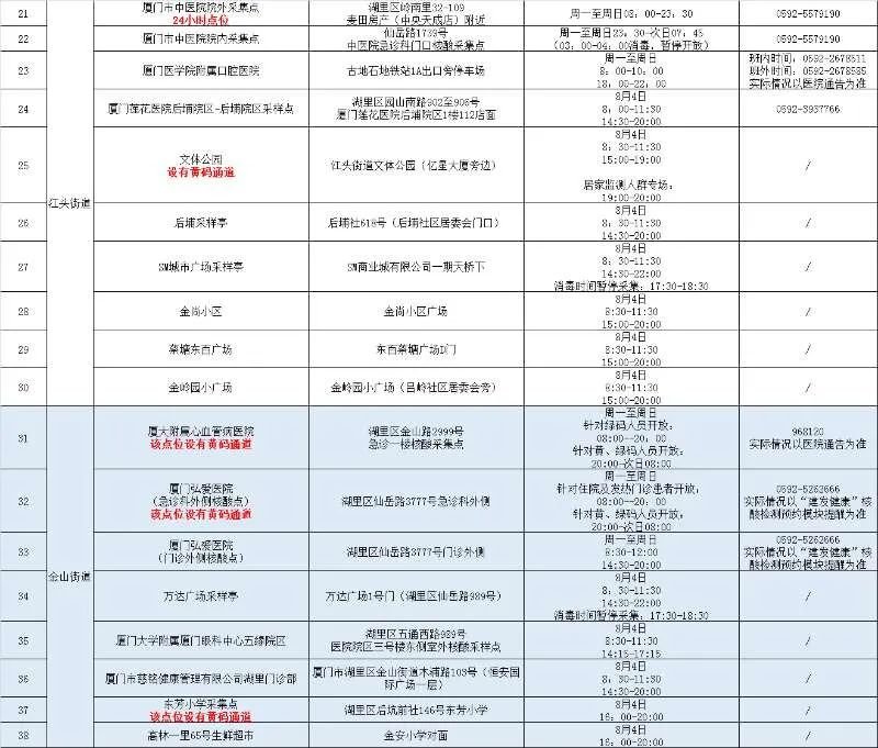 2022年8月4日厦门免费核酸检测点汇总(厦门最新核酸检测结果)