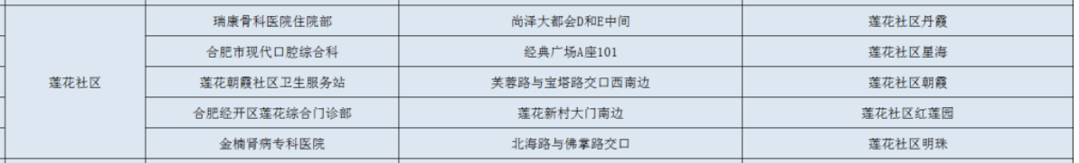 合肥经开区莲花社区有哪些免费核酸检测点