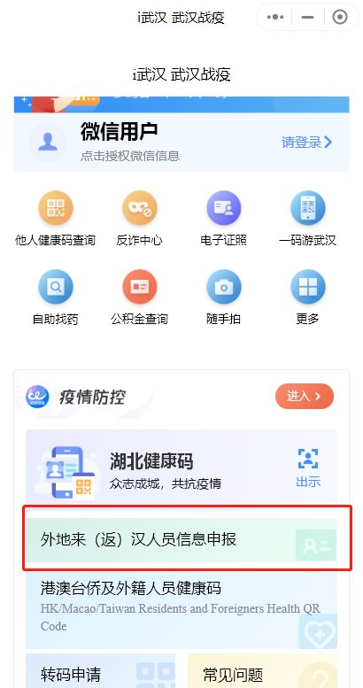 【最新报备要求】所有来(返)汉人员应在抵汉前7天内通过“i武汉 武汉战疫”微信小程序,点击“外地来(返)汉人员信息申报”,主动、如实填写来源地、目的地等相关信息进行报备,积极配合落实各项疫情防控措施。来(返)汉人员完成在线信息申报后,方可进行落地核酸采样;若来(返)汉人员未完成在线信息申报,不能乘坐公共交通工具、前往公共场所和办理酒店入住手续。
