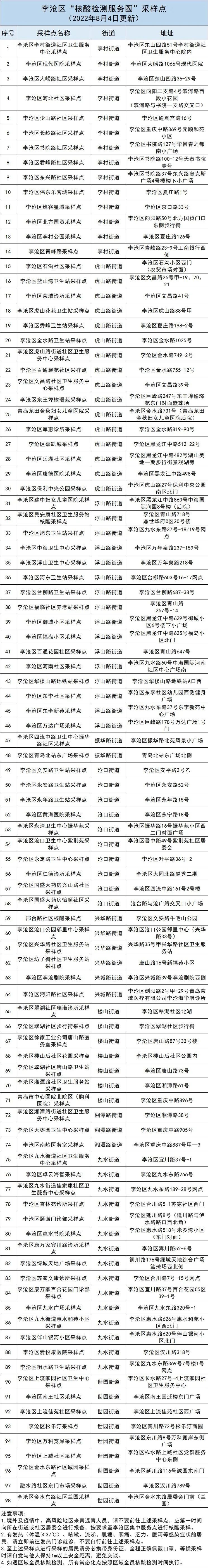 李沧区“核酸检测服务圈”采样点详情见本通告下方。