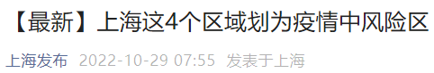 上海4个区域划为疫情中风险区(上海4个区域划为疫情中风险区)
