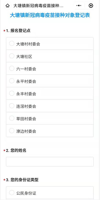 先登记个人基本信息,再按照村(居)委会或工作单位通知的接种时间,自行前往大塘镇疫苗接种点进行接种。