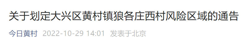 10月29日通报北京大兴区新增1例阳性人员并划定高风险区