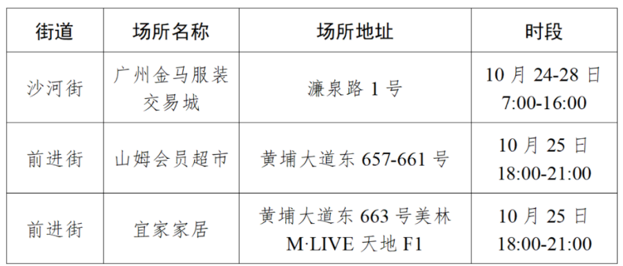 广州天河疾控提醒:到过以下场所的人员请立即报备并就近进行核酸检测