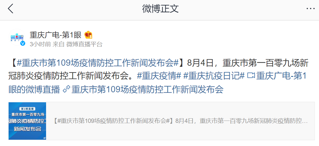 ➤重庆市第109场新冠肺炎疫情防控工作新闻发布会