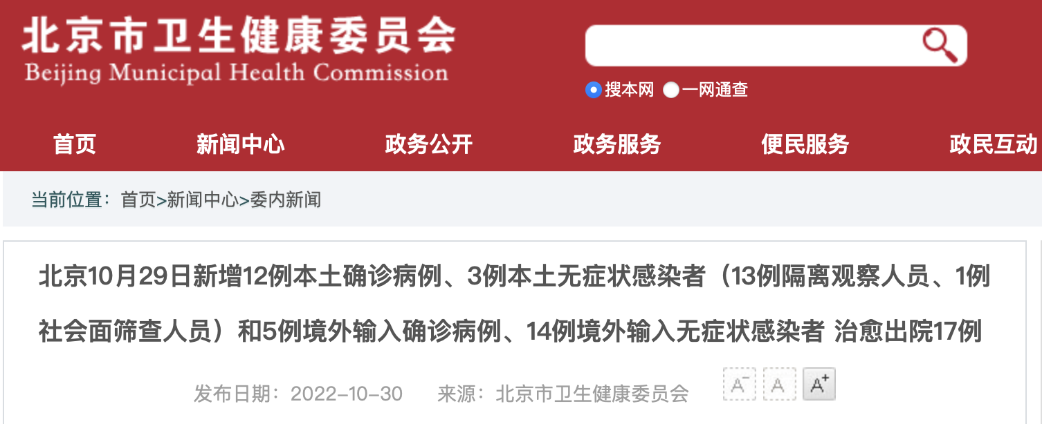 10月29日北京新增12例本土确诊病例和3例本土无症状感染者