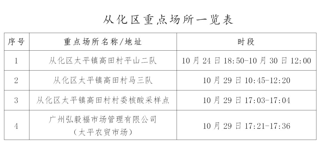 2022年10月30日广州从化区公布重点场所一览