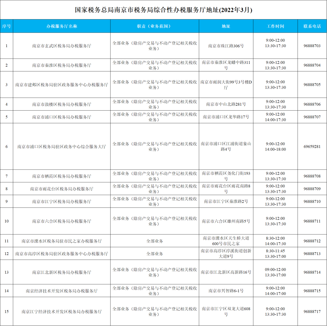 *国家税务总局南京市税务局综合性办税服务厅地址: