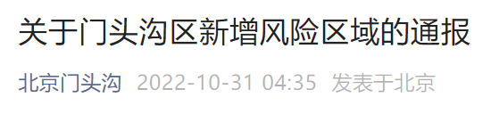 2022年10月31日通报北京门头沟区新增风险区域情况