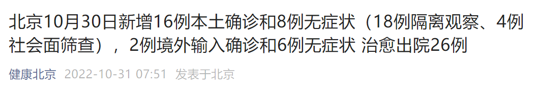10月30日0至24时北京新增16例本土确诊和8例无症状