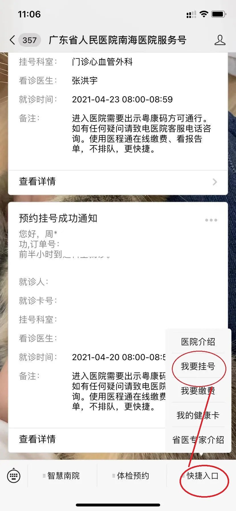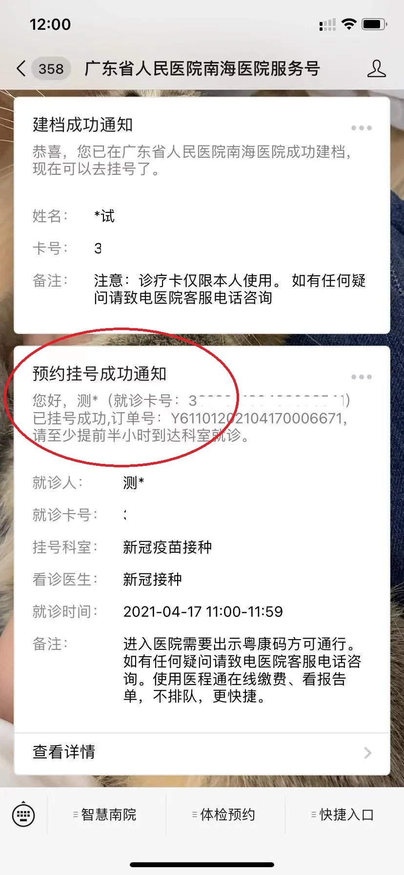第五步、挂号成功后如图所示,公众号将推送成功预约的信息。