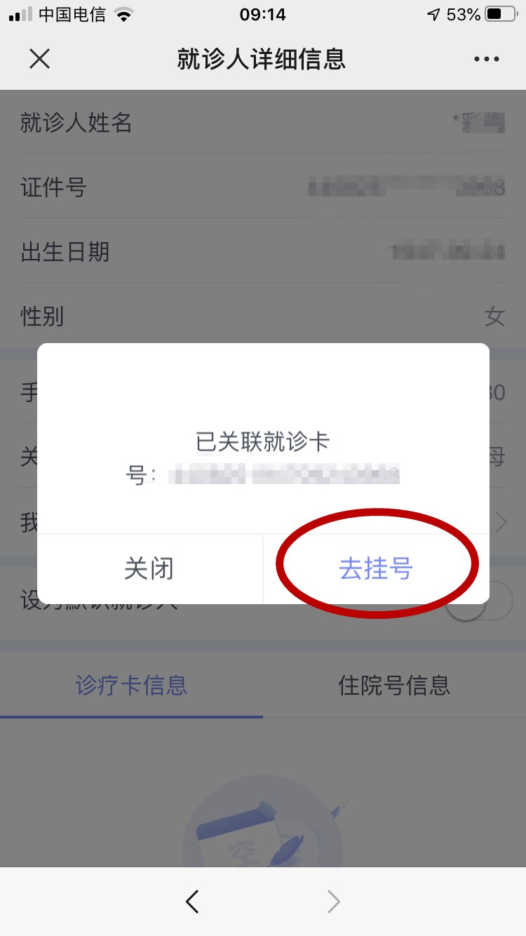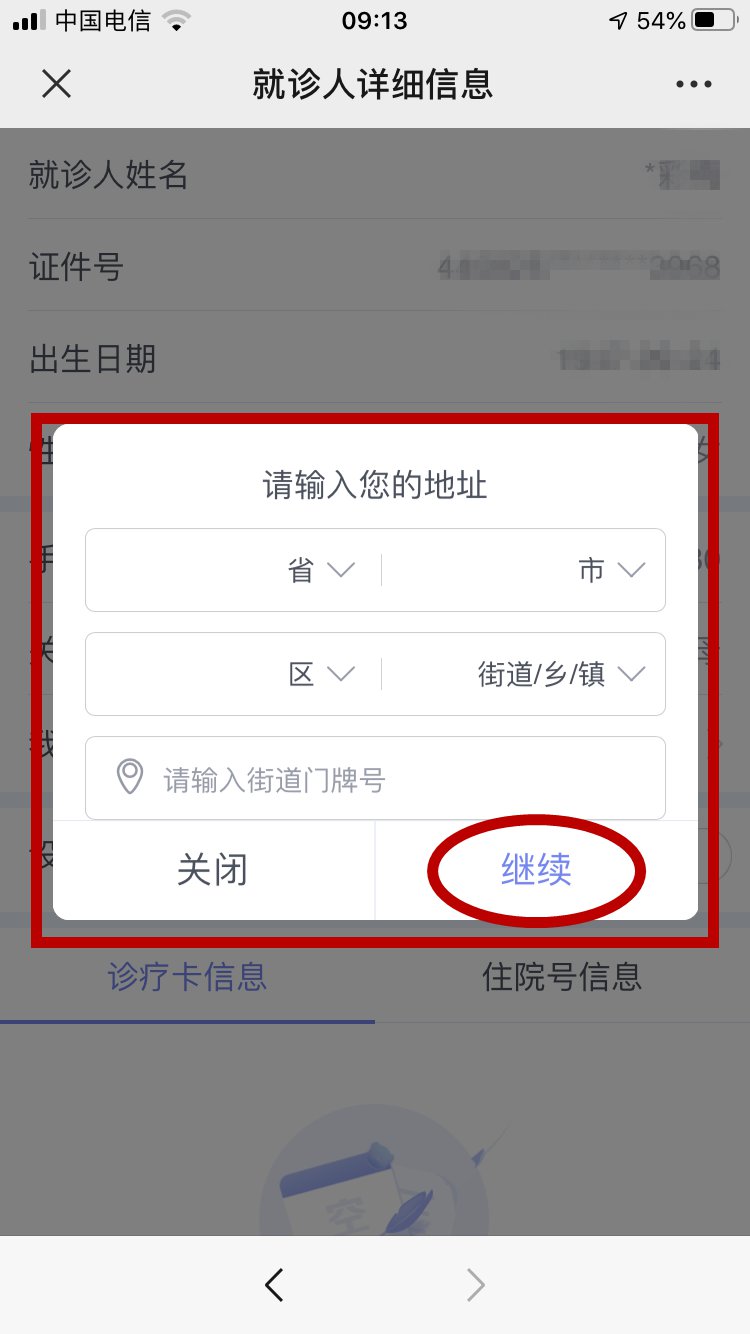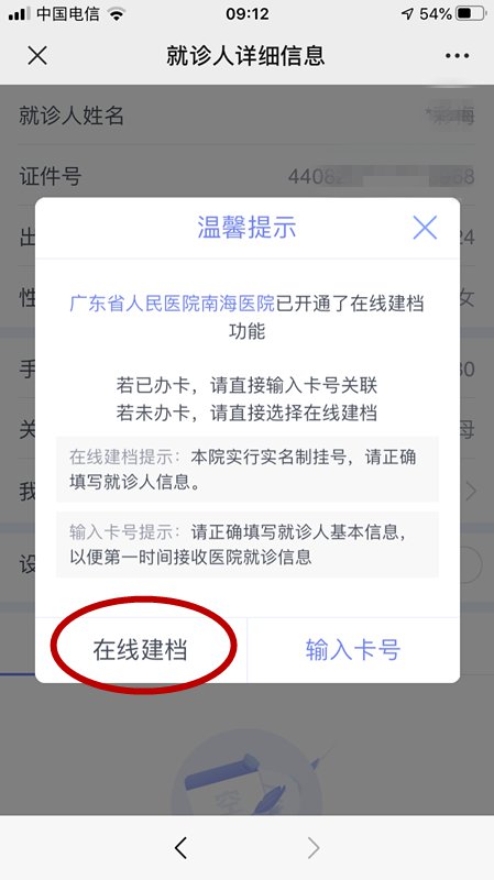 1、未在本院办理诊疗卡的市民,请选择“在线建档”,并输入地址等相关信息后保存-点击“去挂号”。已办理诊疗卡的市民,请选择输入卡号(详见下面步骤)。