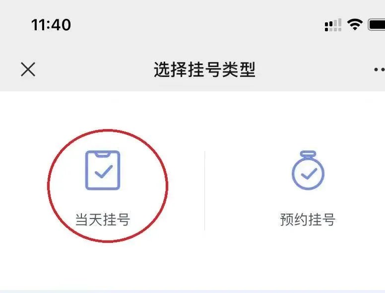 第三步、回到公众号选择“快捷入口”,”点击“我要挂号”,选择“当天挂号”或“预约挂号”,选择“新冠疫苗接种”—“新冠接种”。