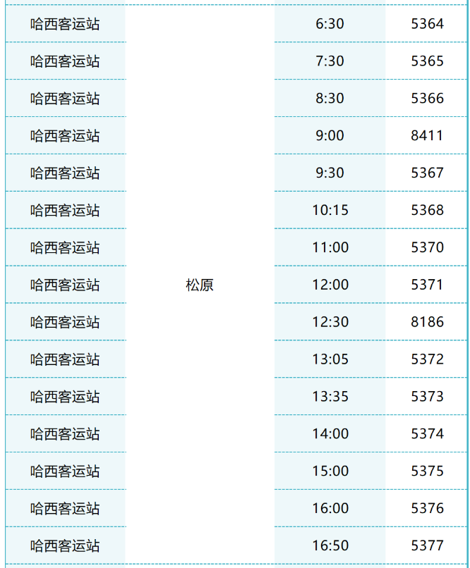 哈西客运站松原班车时刻表:(更新时间:2022年8月1日)