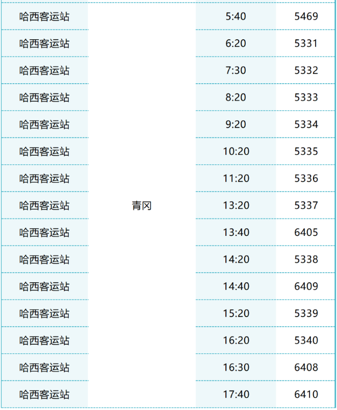 哈西客运站青岗班车时刻表:(更新时间:2022年8月1日)