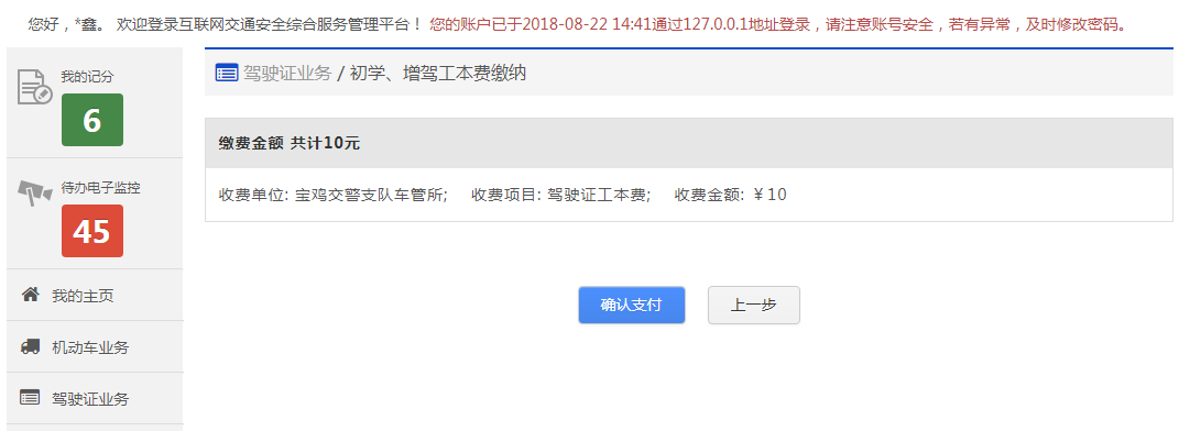(2)支付失败的驾驶证工本费记录在该步骤也会显示。
