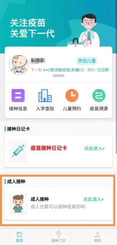 二、如实注册,接种疫苗后点击“成人接种”模块,按要求添加本人。