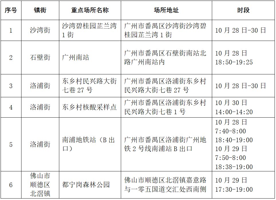 到过广州番禺区沙湾、石壁、洛浦,顺德北滘重点场所的请报备