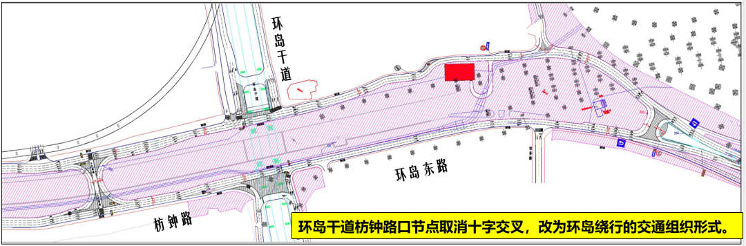 一、原交叉口由北往东方向的左转车辆,改为由北往西右转进入枋钟路,经环岛绕行后直行实现左转;