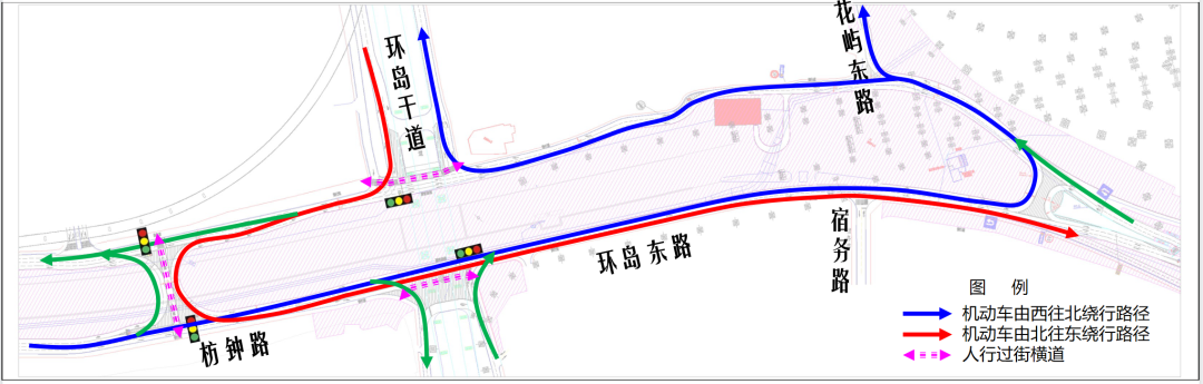 环岛干道枋钟路口围挡期间,机动车绕行路径为: