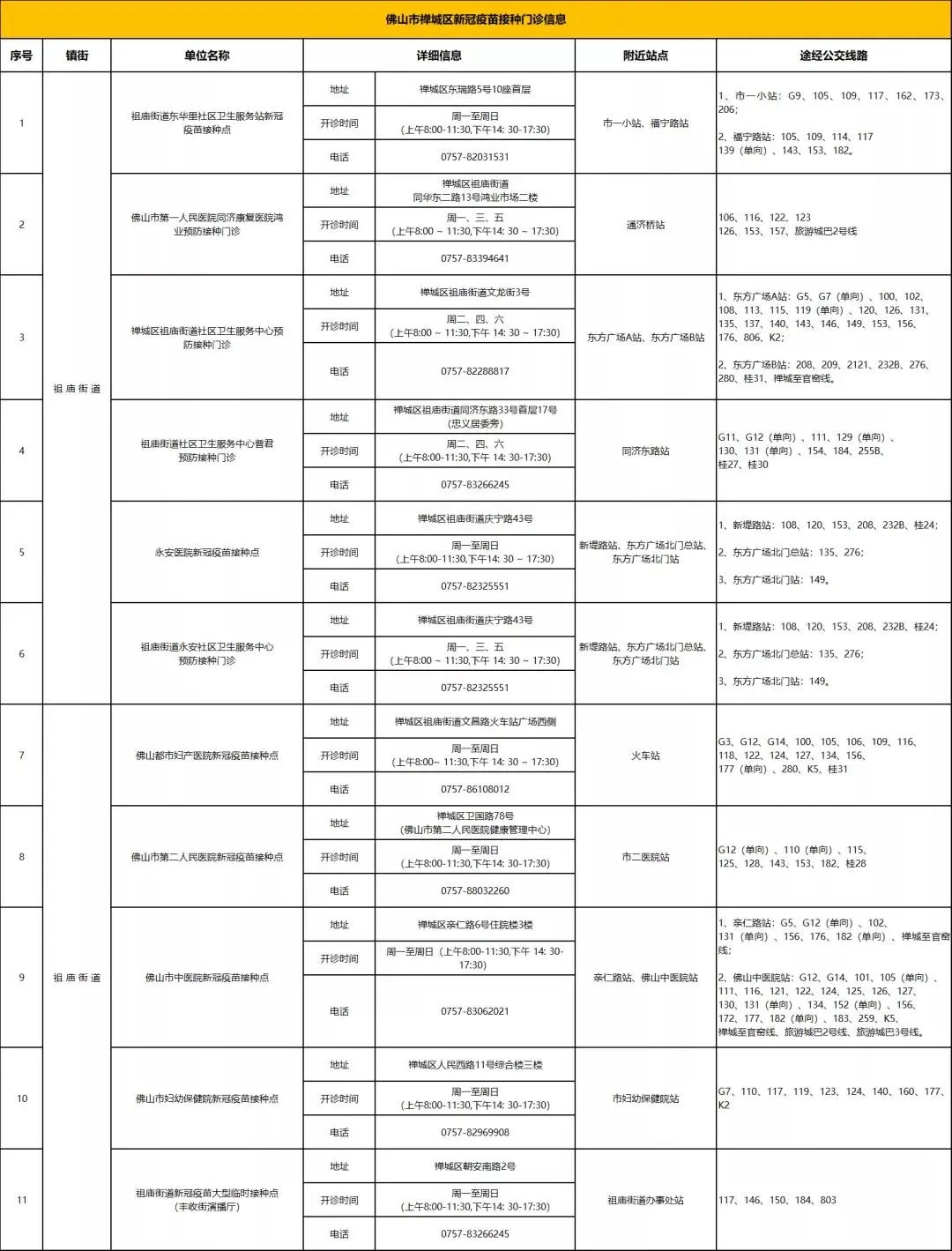佛山禅城区新冠疫苗临时接种点直达公交指南
