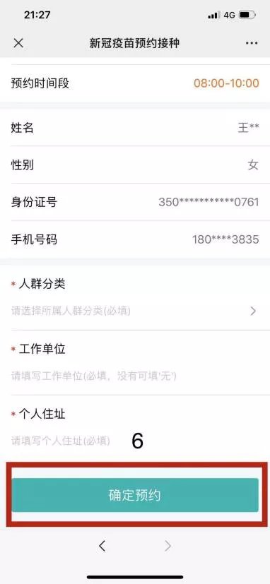 第五步、确认预约信息,点击确认预约提交