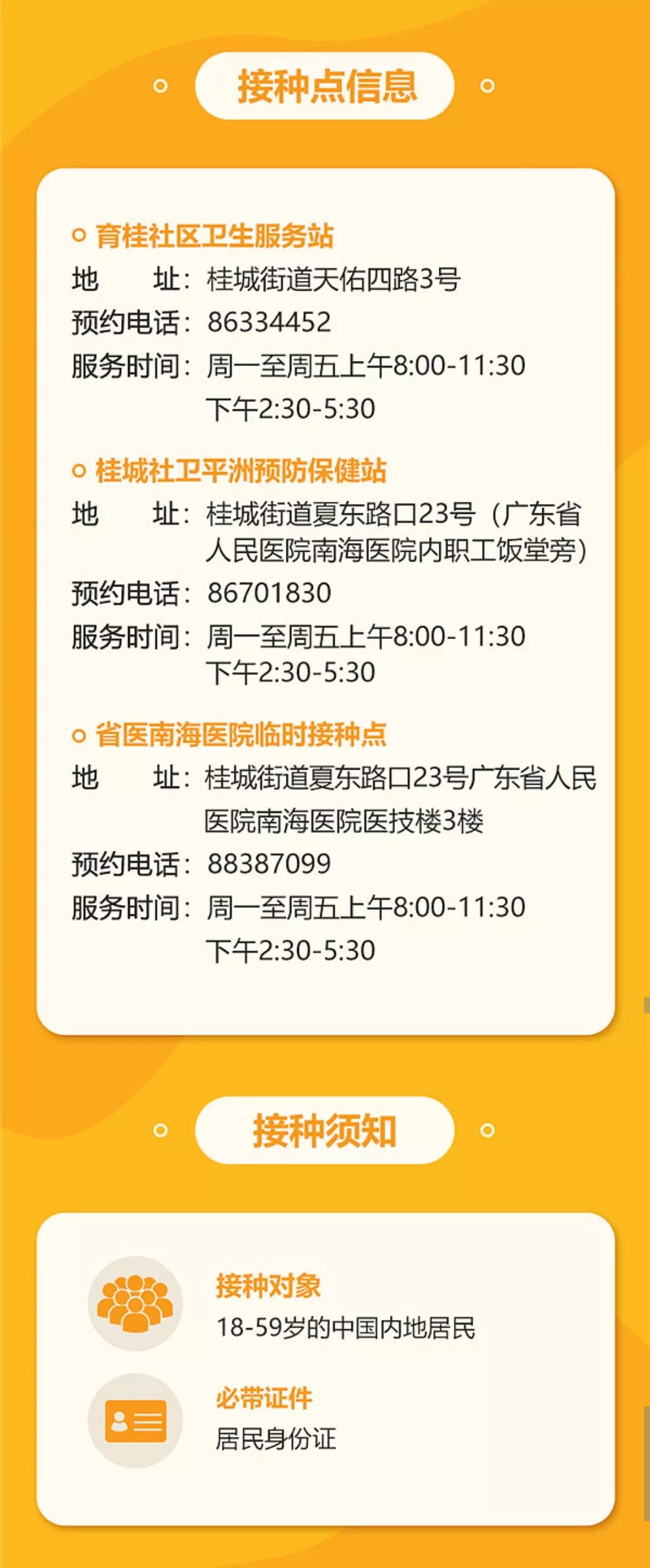 注:桂城医院新冠疫苗临时接种点已由育桂卫生站迁至桂城街道党群服务中心(桂城街道南新一路4号南海文化公园旁),新接种点根据指引规范化设置,功能齐全,场地宽敞明亮、卫生整洁,停车方便【接种流程】。