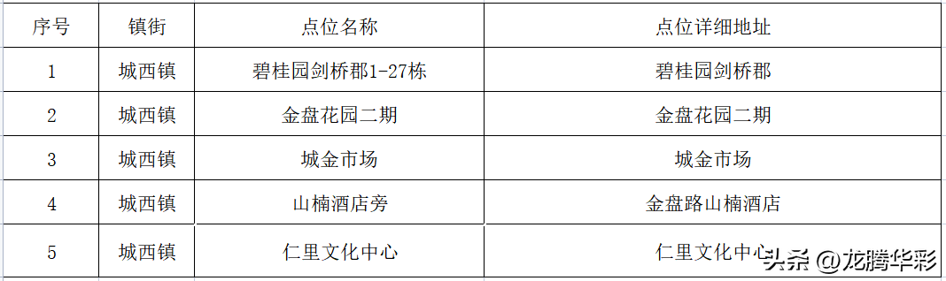 龙华区城西镇区域核酸采样点位汇总表