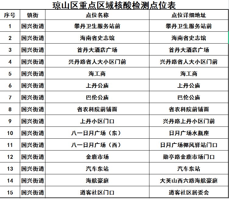 附:琼山区重点区域核酸检测点位表