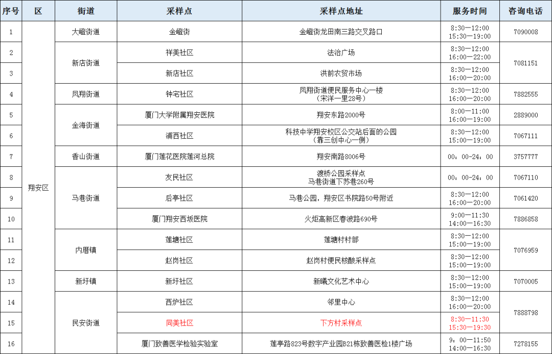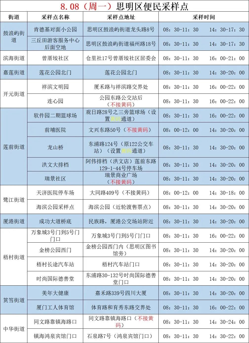 2022年8月8日厦门免费核酸采样点一览