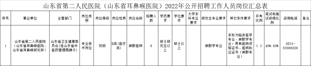 招聘岗位:拟面向社会公开招聘麻醉医师8人,均为初级岗位。