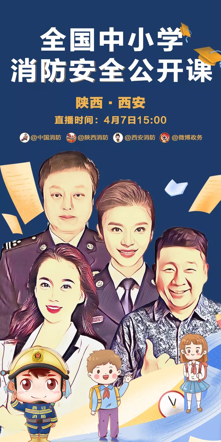 2021年4月7日(星期三)15时,@中国消防 官方微博将对“全国中小学消防安全公开课”进行网络直播。