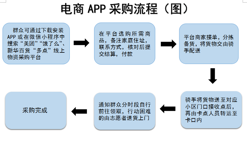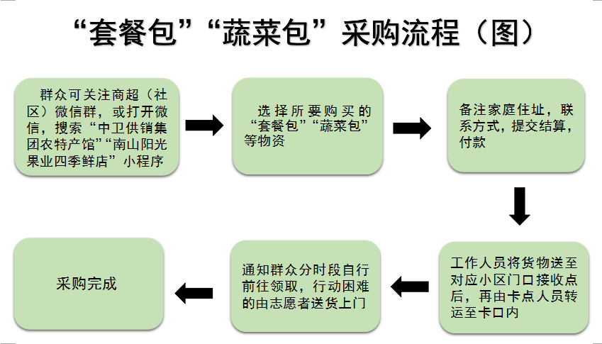 辖区群众可通过电商APP、商超(社区)微信群、电话直接联系、“套餐包”“蔬菜包”4种方式采购生活物资。