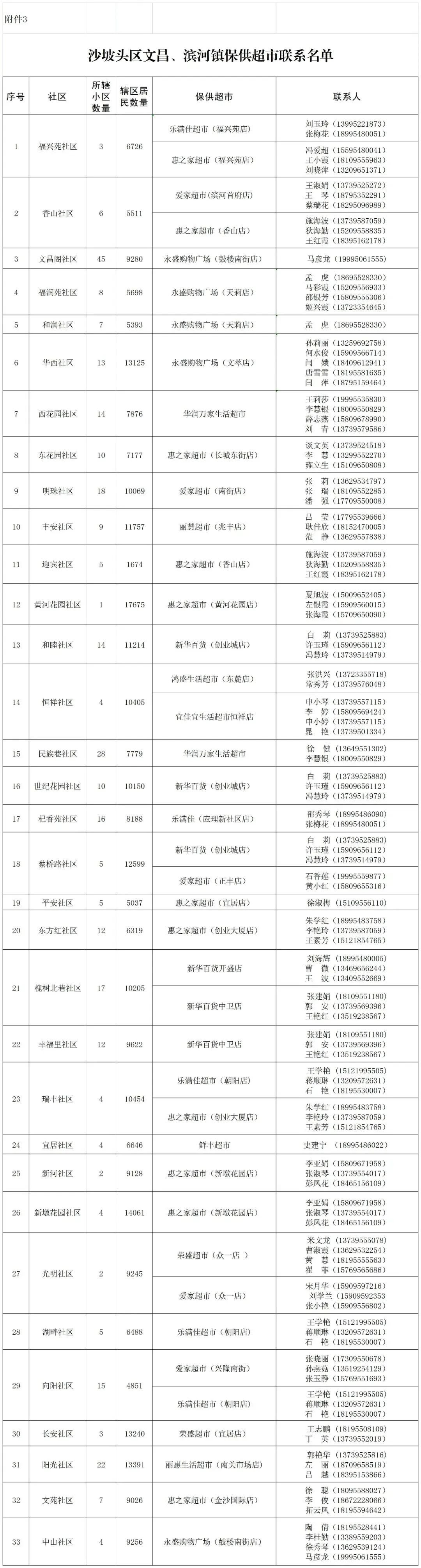附件3:沙坡头区文昌镇、滨河镇保供超市联系名单