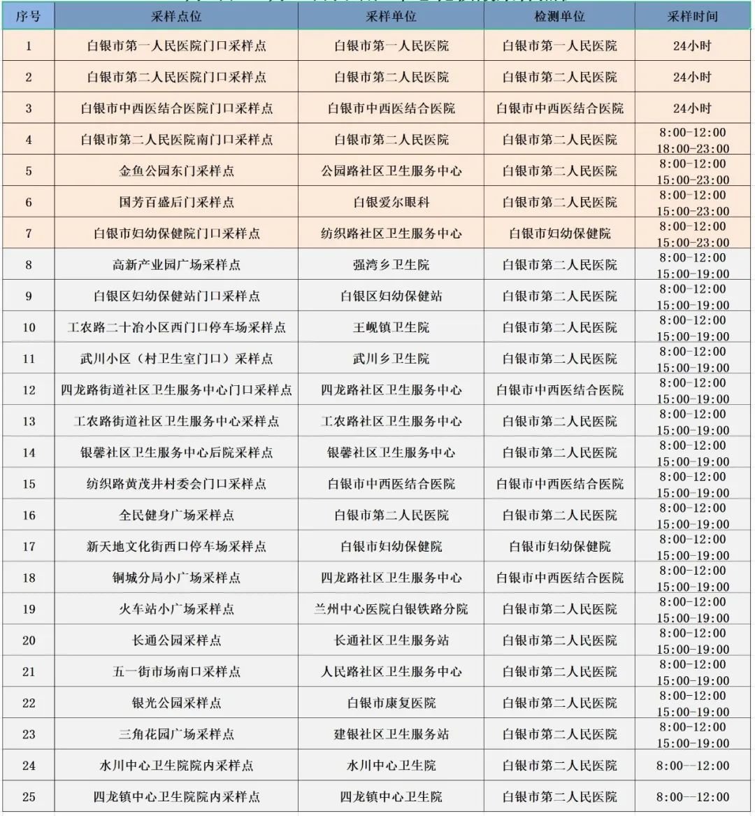 白银区常态化核酸采样点位+时间 白银区常态化核酸采样点位 时间查询