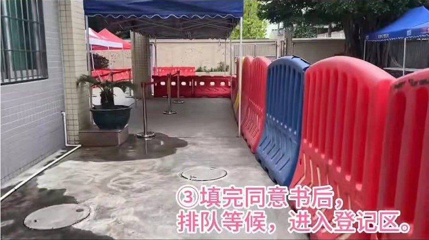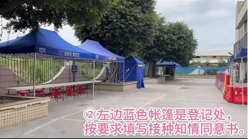 ②左边蓝色帐篷是登记处,按要求填写接种知情同意书。