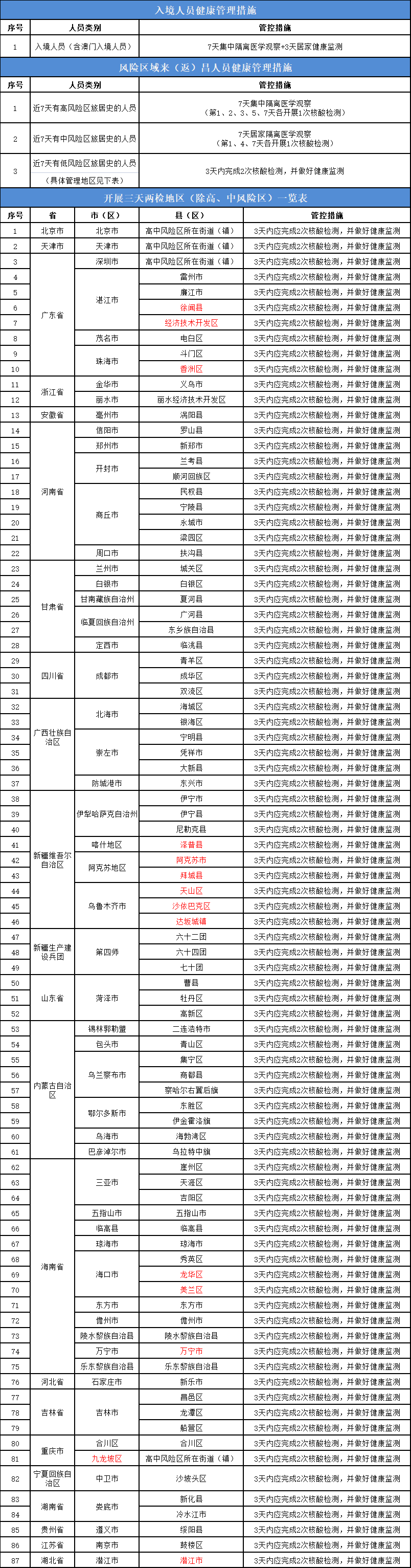 二、来自以下地区的来(返)昌人员严格按照《新型冠状病毒肺炎防控方案(第九版)》要求落实管控措施。