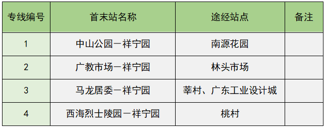 4月4日,计划开通1条杏坛永安堂公交免费专线,半小时一班,中途不设停靠站点。运营时间为6:30-18:00。