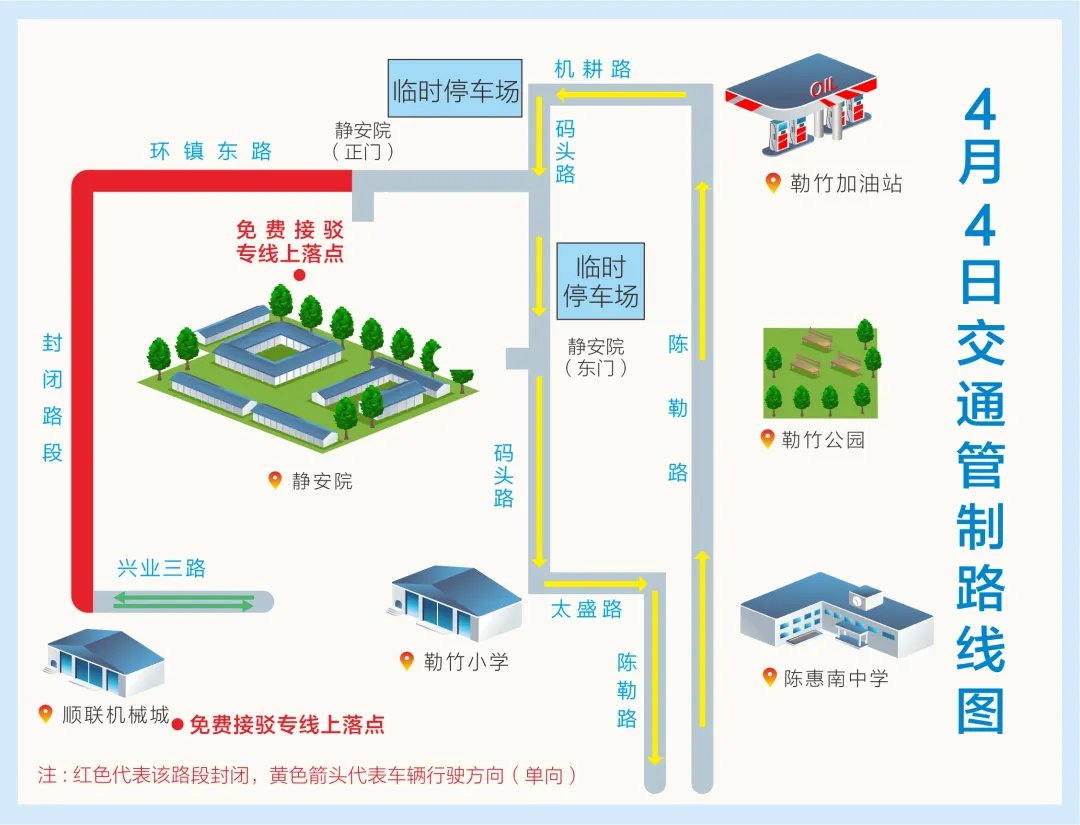 2021年清明节(4月4日),陈村静安院附近路段车辆交通管制及疏导指引: