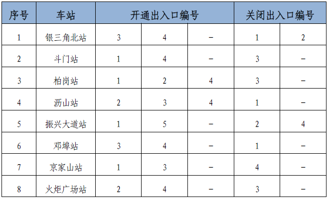 ➤8月9日起南昌地铁3号线将临时关闭10个出入口: