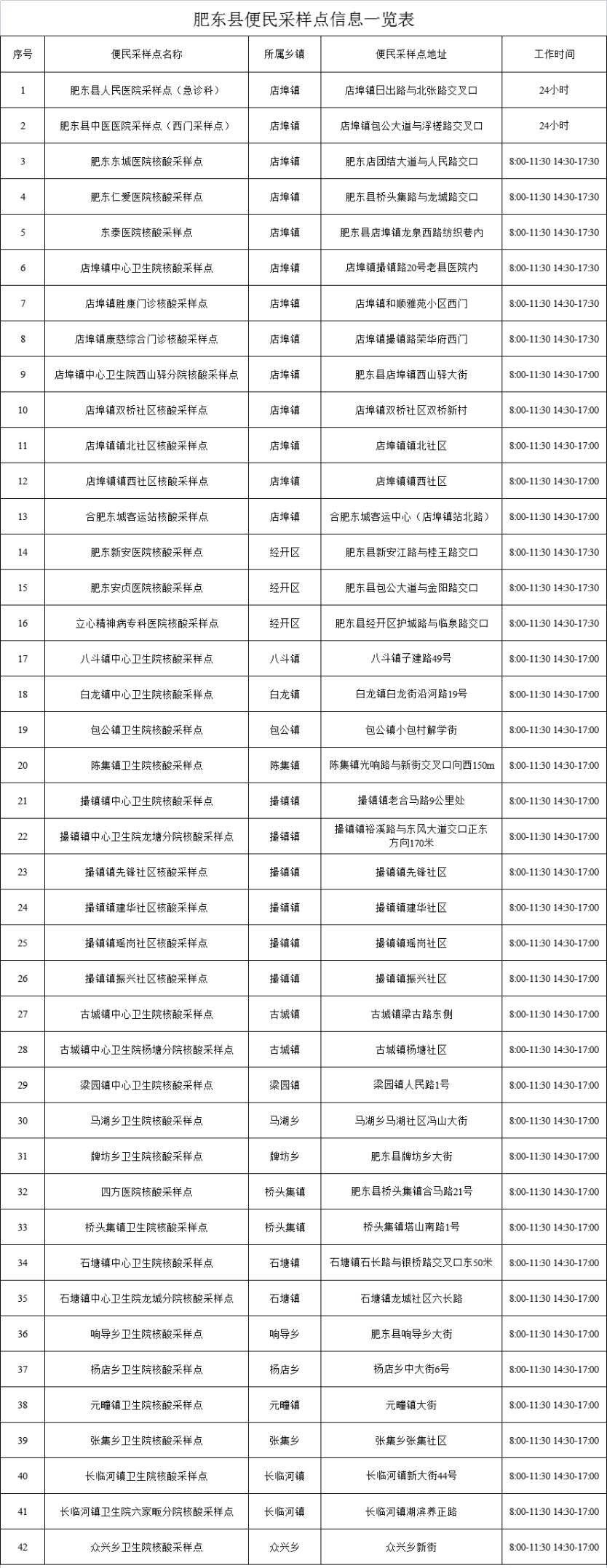 合肥肥东便民核酸采样点一览表(合肥核酸检测采样点)