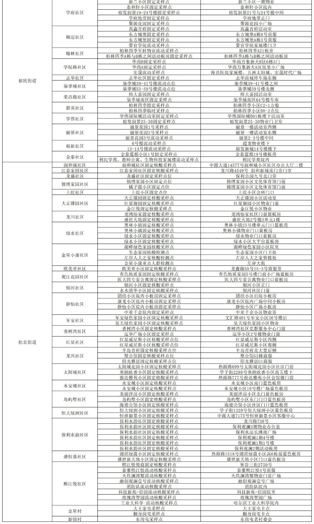 根据我市目前疫情防控形势,经市指挥部统一部署,松北区于8月8日14时、8月9日8时连续开展两轮区域核酸检测。参检人群范围为全部在哈人员。请辖区居民根据街道、社区具体通知,到就近核酸采样点参加检测。