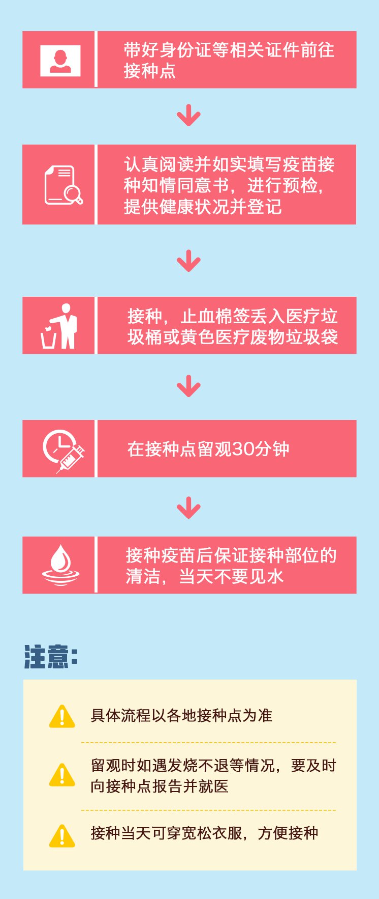 ②为缩短接种流程,请提前在预约页面下载或在村(社区)领取并填写好《知情同意书》、《流行病学调查问卷》,携带到接种点。