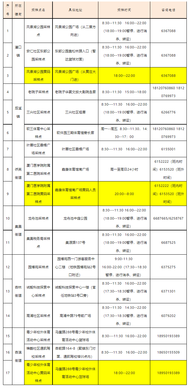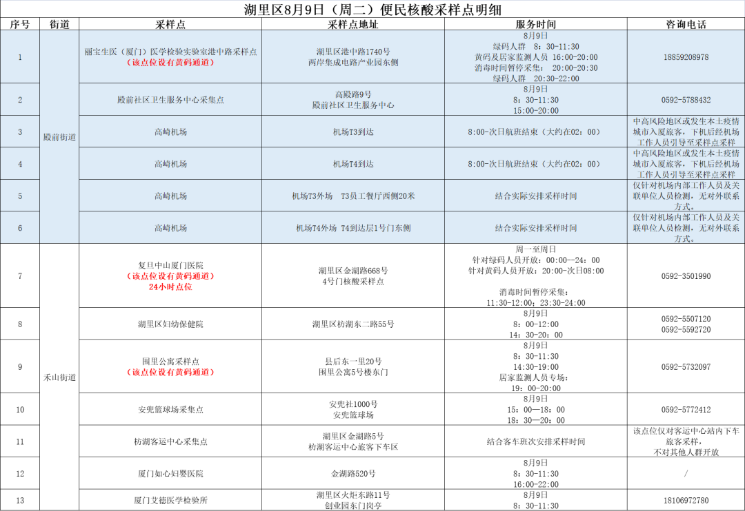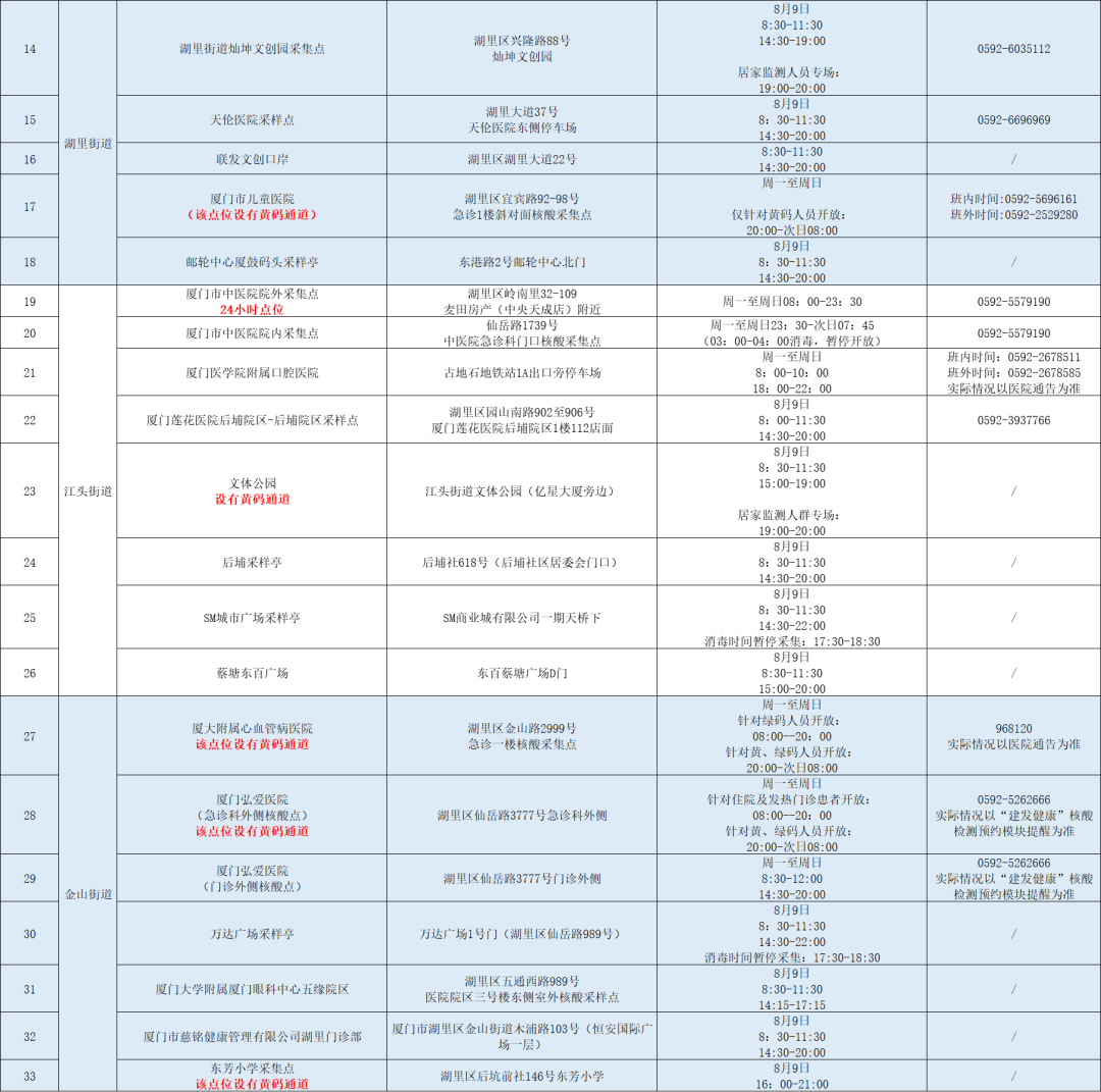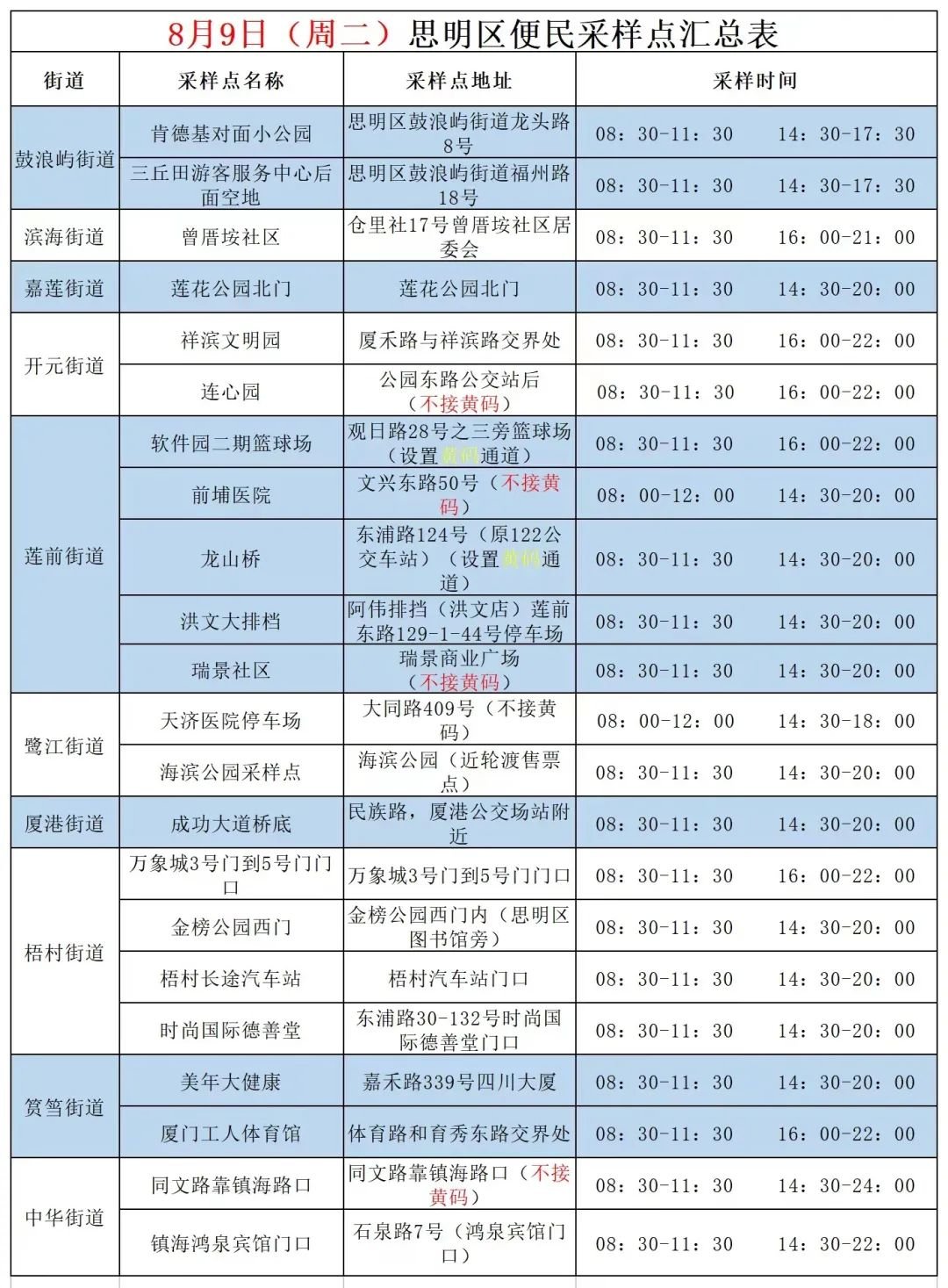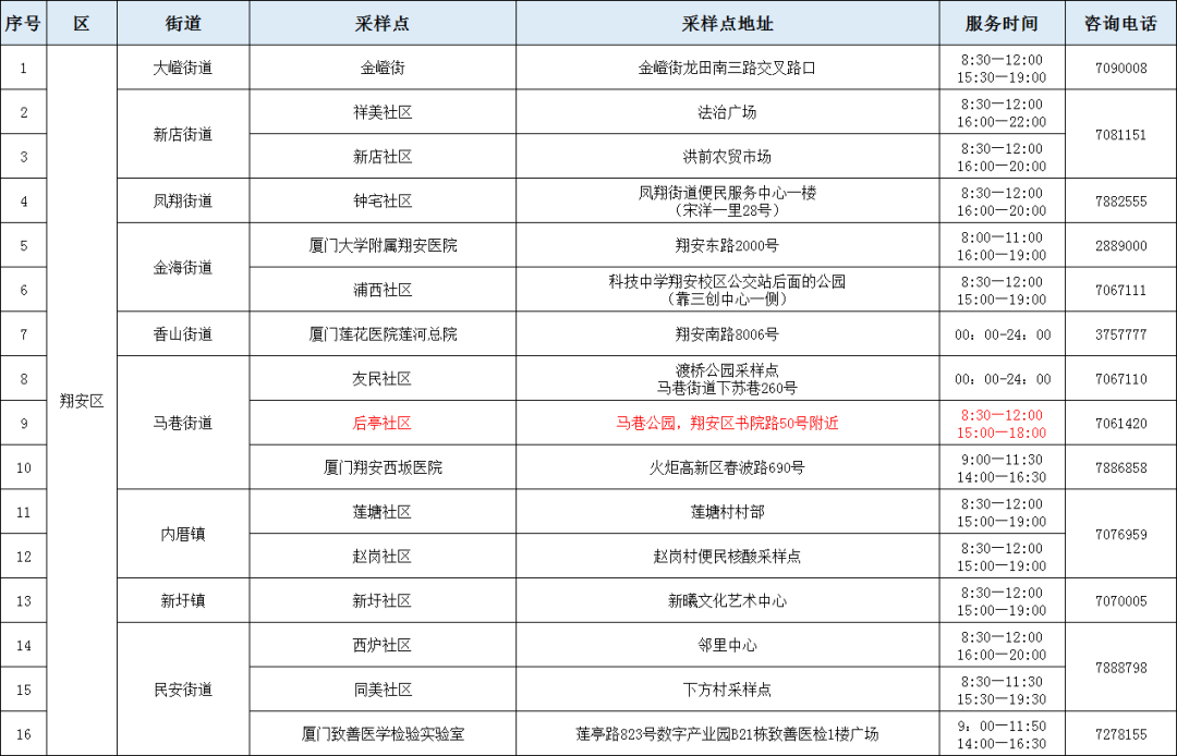 8月9日厦门免费核酸采样点汇总(六区全)