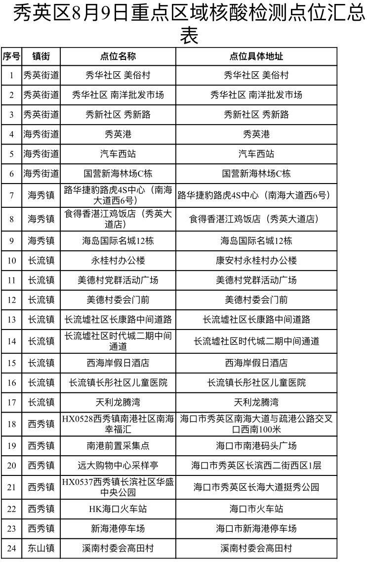 (三)采样地点:秀英区重点区域核酸采样点(详见附件)。