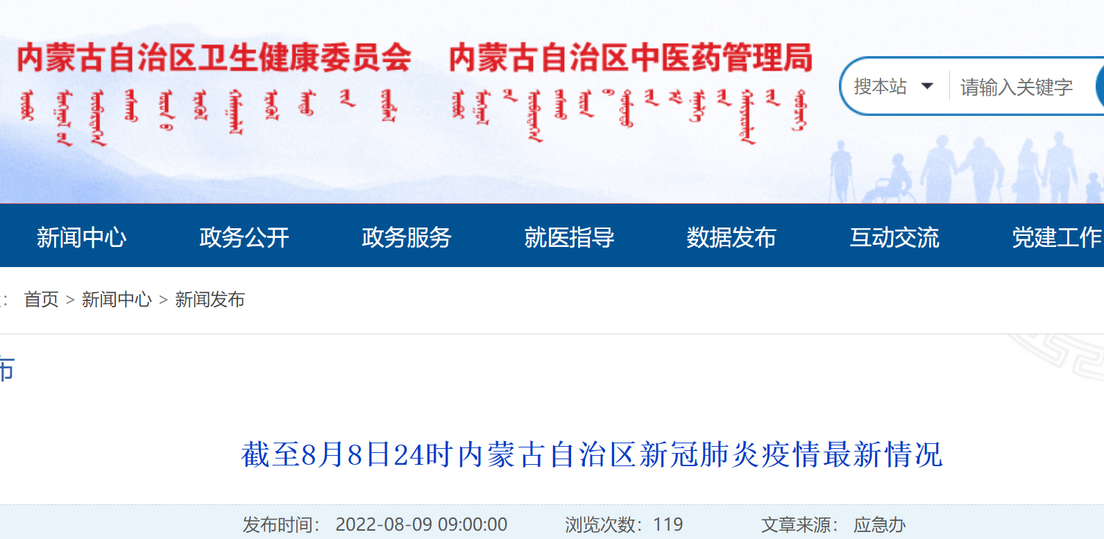 截至8月8日24时内蒙古自治区新冠肺炎疫情最新情况