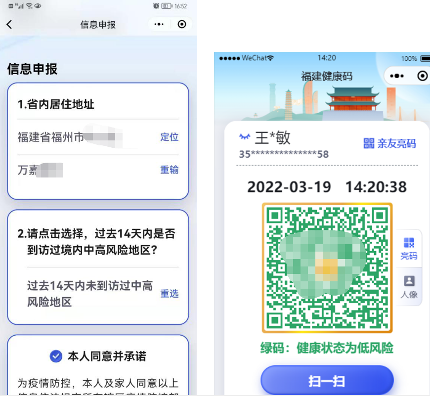 微信APP申领步骤:打开微信小程序搜索“福建健康码”,完成登录和认证授权后,即可申领健康码。